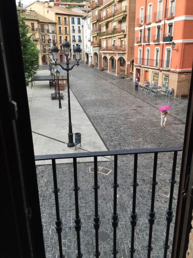 Our room balcony looks out onto the plaza and I am hoping that it will be full of people tonight as it is Saturday. But, seeing from Pamplona, it doesn’t have to be a weekend to bring the Spanish out onto the streets at night. Diner will probably be within eyesight of our room as there appear to be many surrounding the plaza.