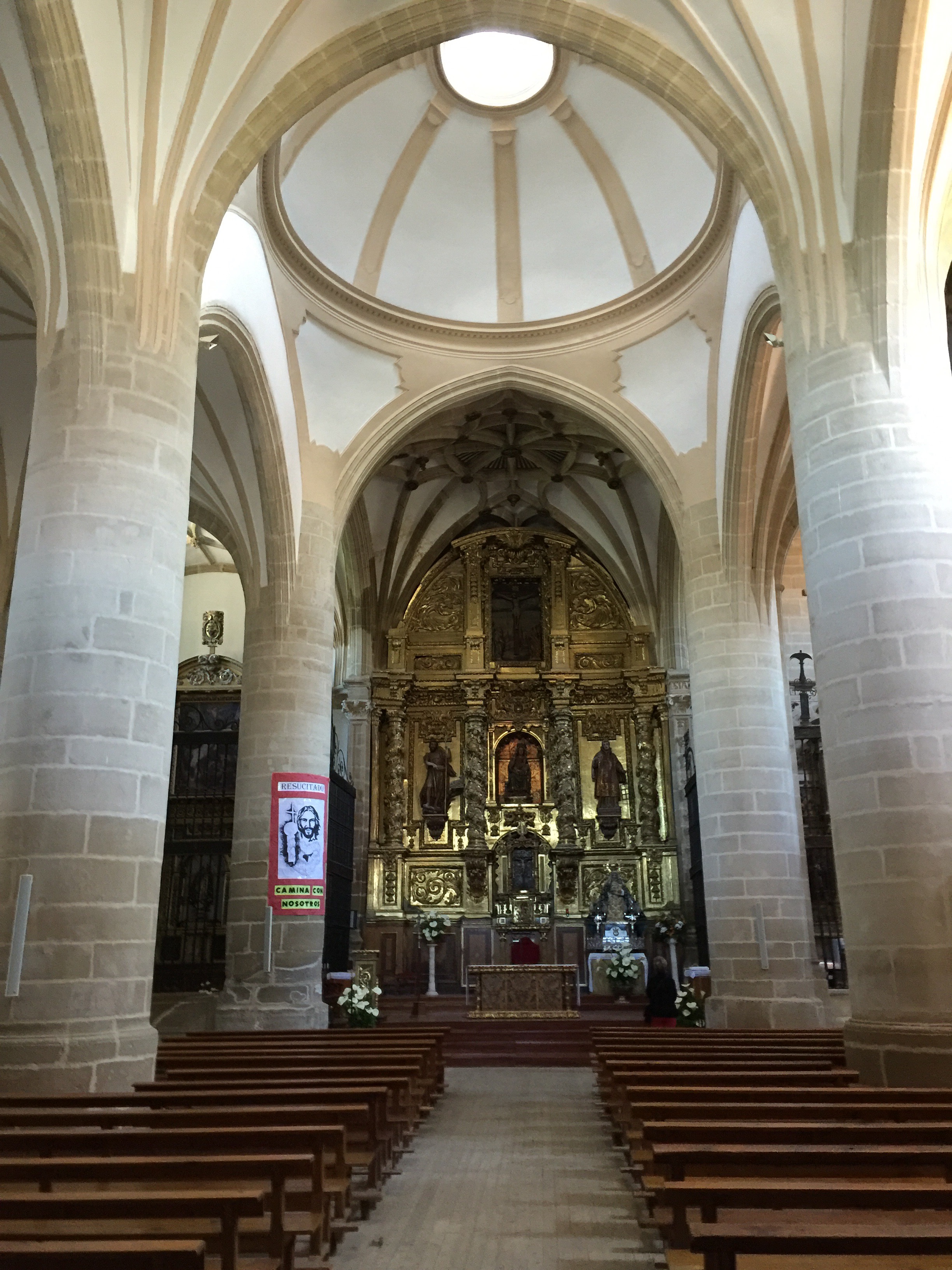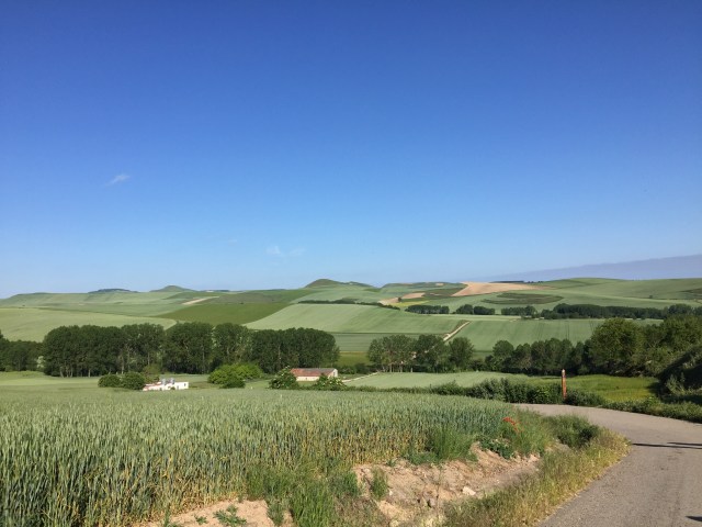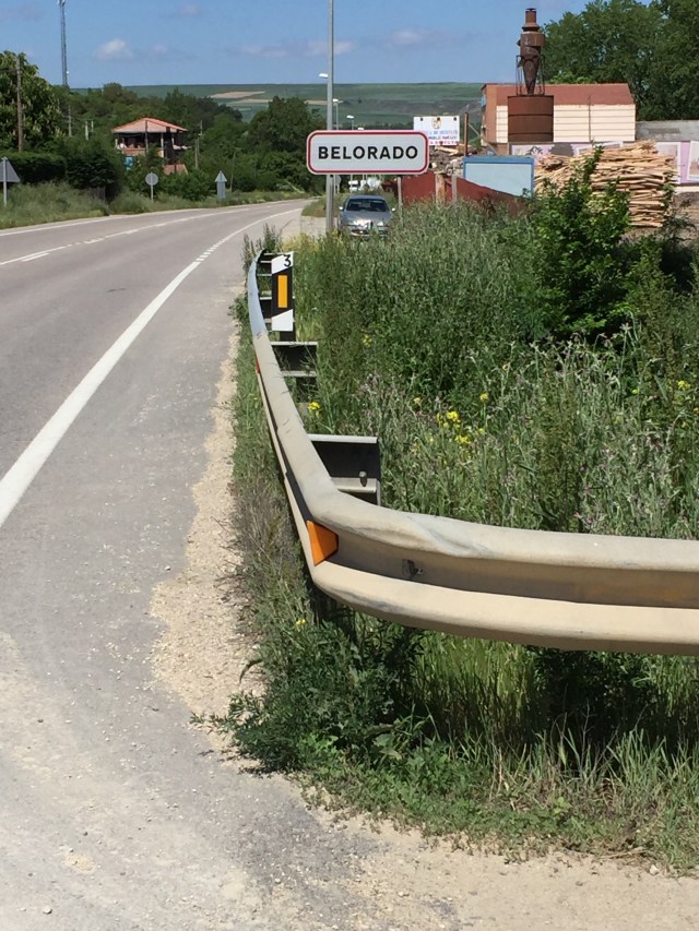 Today we trekked 14.34 miles to the village of Belorado, population 2,000. It was a pleasant walk with a total elevation gain of about 1,400′. I mention the elevation gain because no part of the Camino is totally level. It’s always that beautiful level stretch through the rolling hills, and then the downhill, and then the usual uphill.