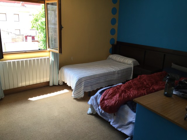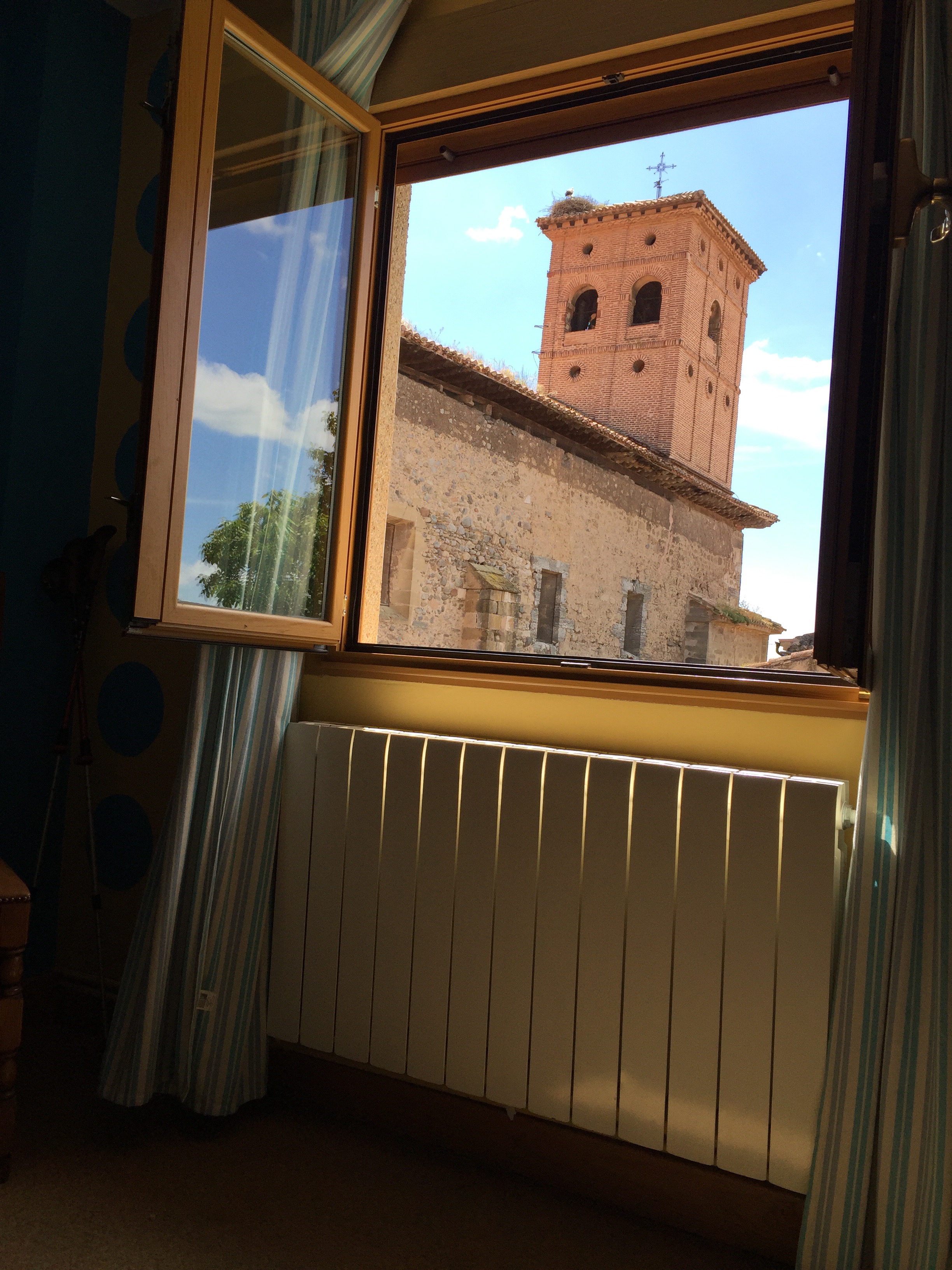 When I arrived in Belorado I found more hostels and hotels than noted in the guide book. I found a hostel that was newer, very clean, and had private rooms, a pleasant change from last night in the dorm style room. Our room looks out at one of two churches that are within two blocks of each other.