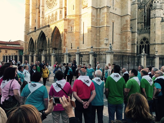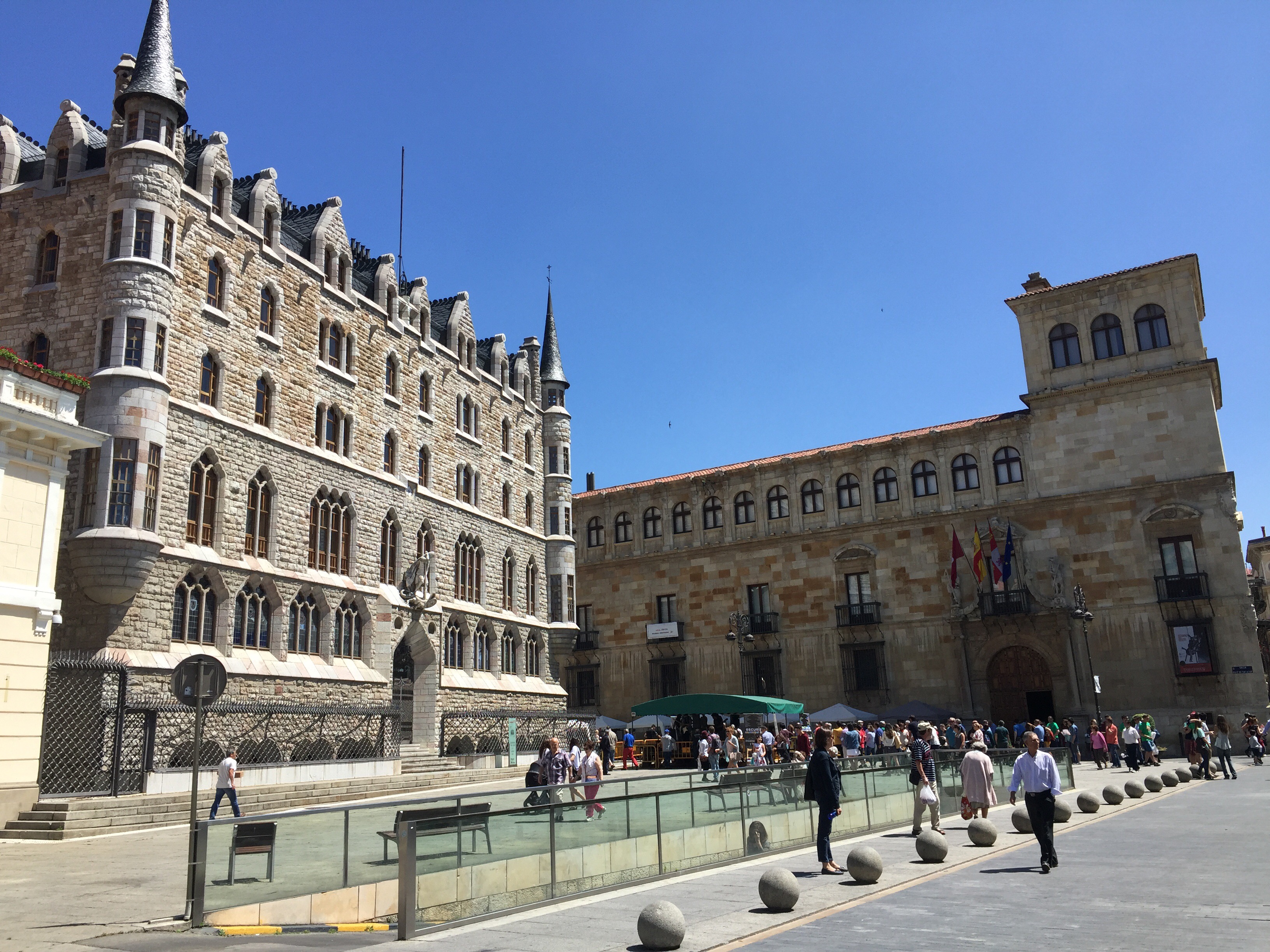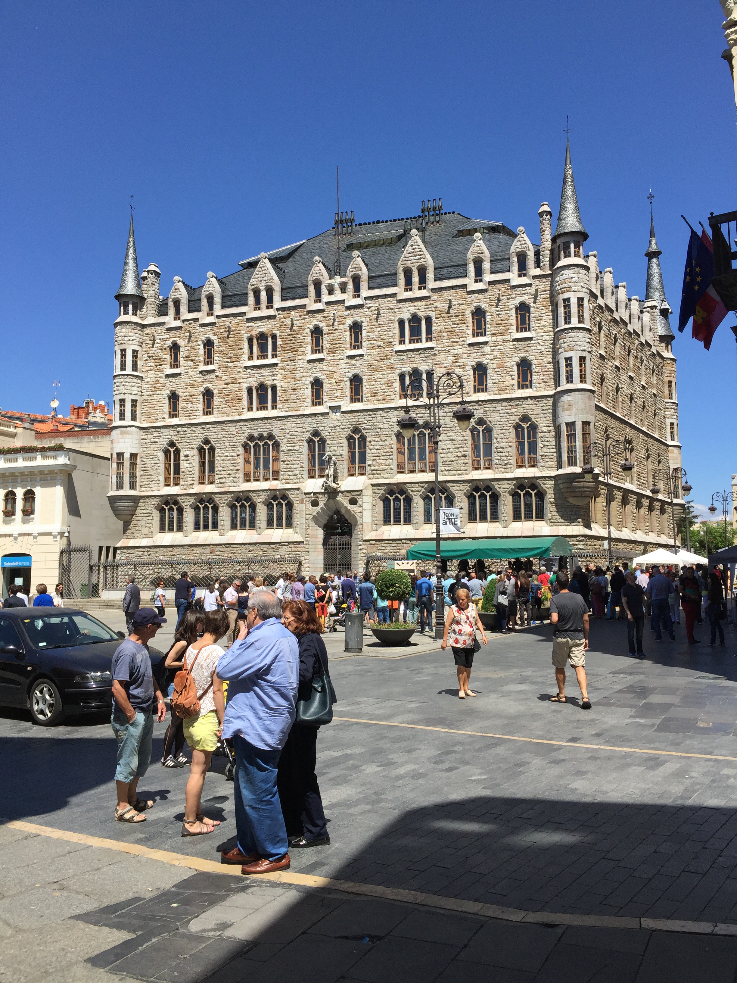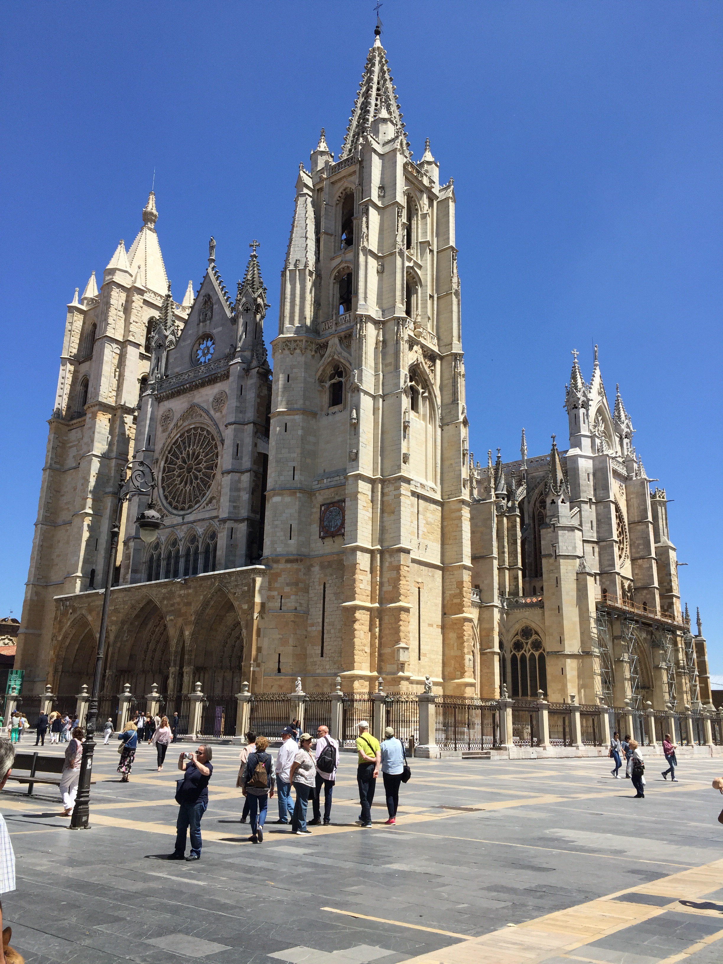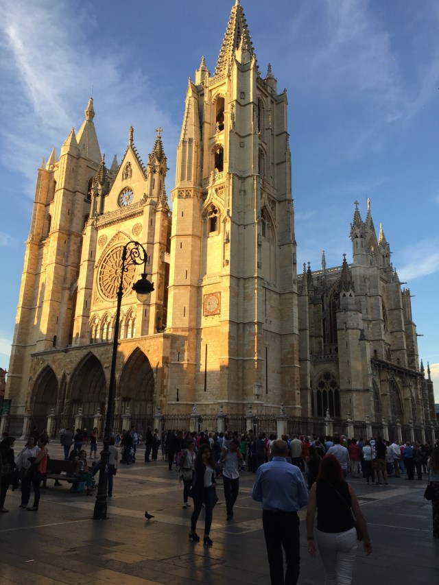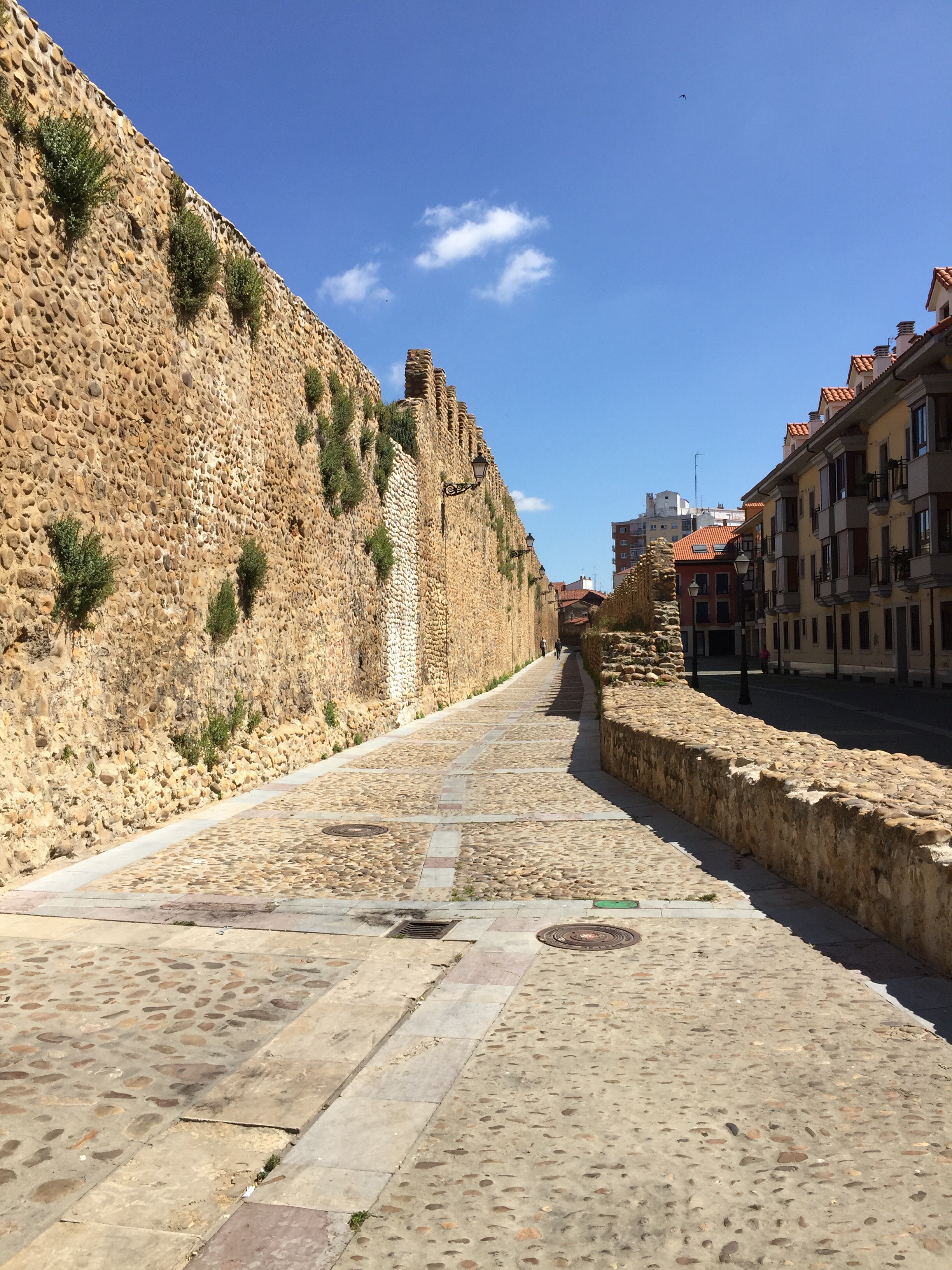 I made it to Leon, population of around 130,000, a little after noon. Walking through the first part of town was a little strange with all the high rise apartment or condo buildings after coming from those small villages. It’s interesting that Spain has all this wide open land and the majority of dwellings appears to be high rise buildings. Then it’s interesting too to see what looks like new apartments or condos built on top of structures and foundations hundreds of years old.