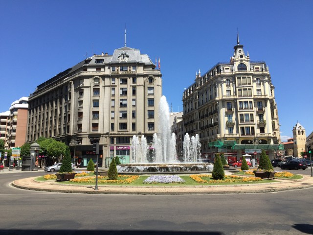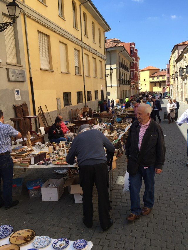 I stopped at a very nice albergue (hostel) near the entrance of town and was told they were full and most other albergues were too because there was a festival this weekend. My luck! I ran into another pilgrim I had met on the Camino and he directed me to his hotel, but it was full. I ended up going to the tourist office and they recommended this hotel a few blocks from the old downtown area. It’s a private room with one bed and a shared bath, but I took it. It was 25 euros. Monica has took the bus here from Sahague and they got us another bed.