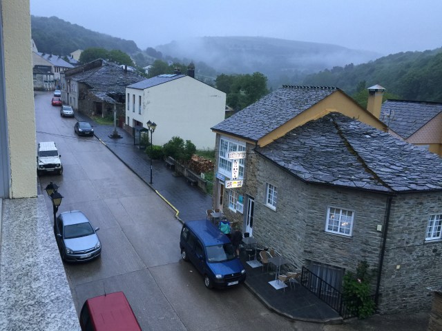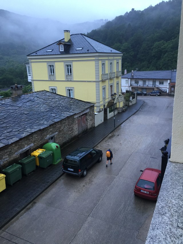 Woke up at six and I could hear the rain! Rain or shine we said, so here we go. We left our cozy little house and walked the half block to the main albergue to pay for both the room and diner. There were only two other pilgrims left there since everyone wanted an early start up the mountain pass.