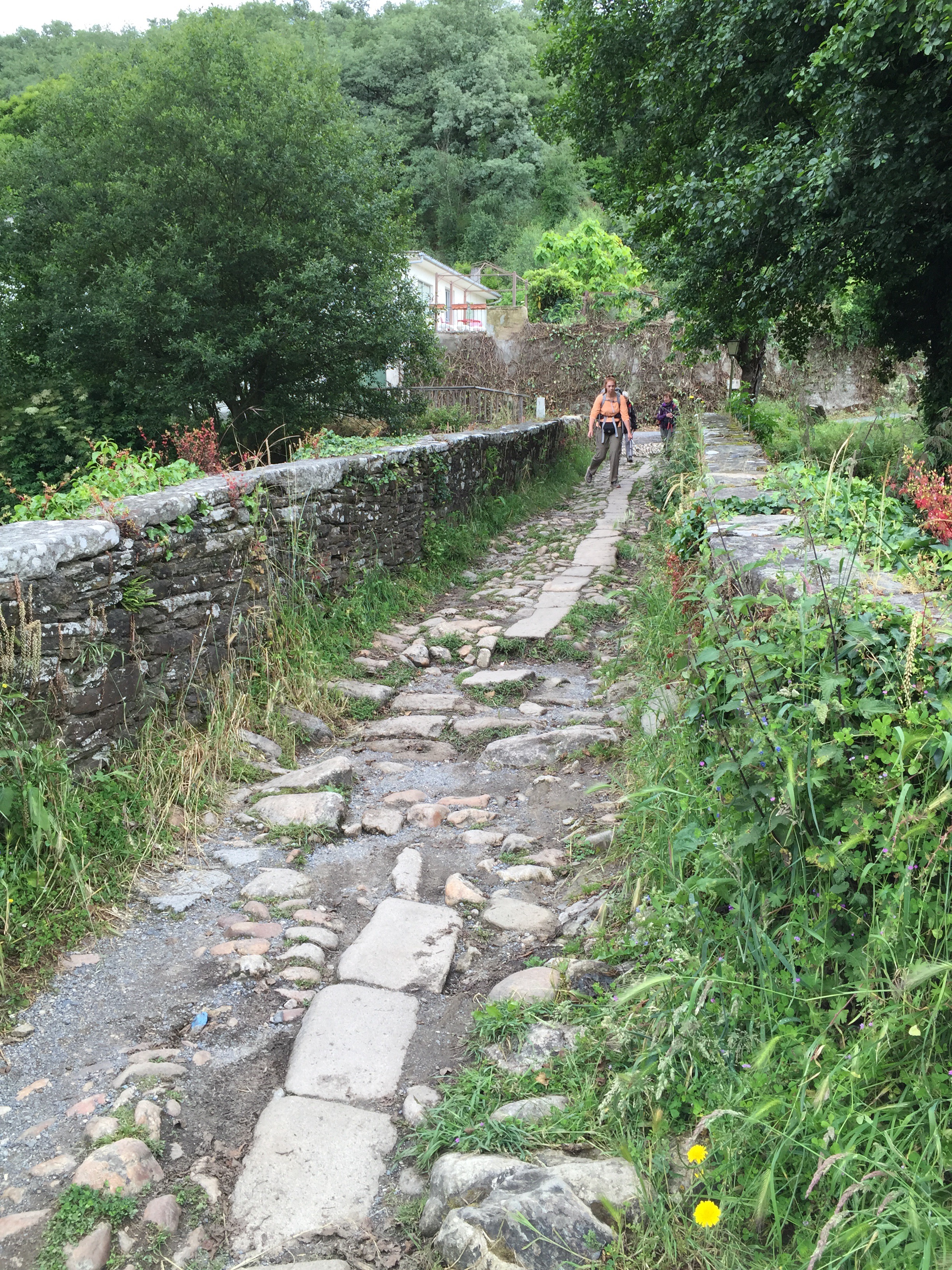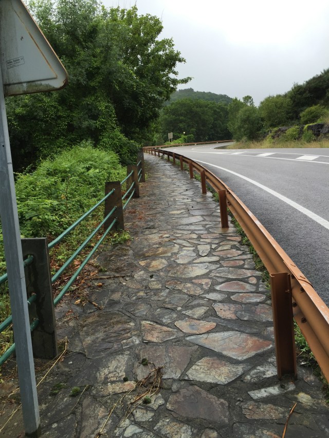 The Camino splits in two different directions right at the edge of the village. One direction is newer and goes through the country and mountains, and is about four miles shorter. This is the recommended route in the guides. The other route runs along the highway and travels off the highway in several places and then cuts back to intersect with the other Camino route.