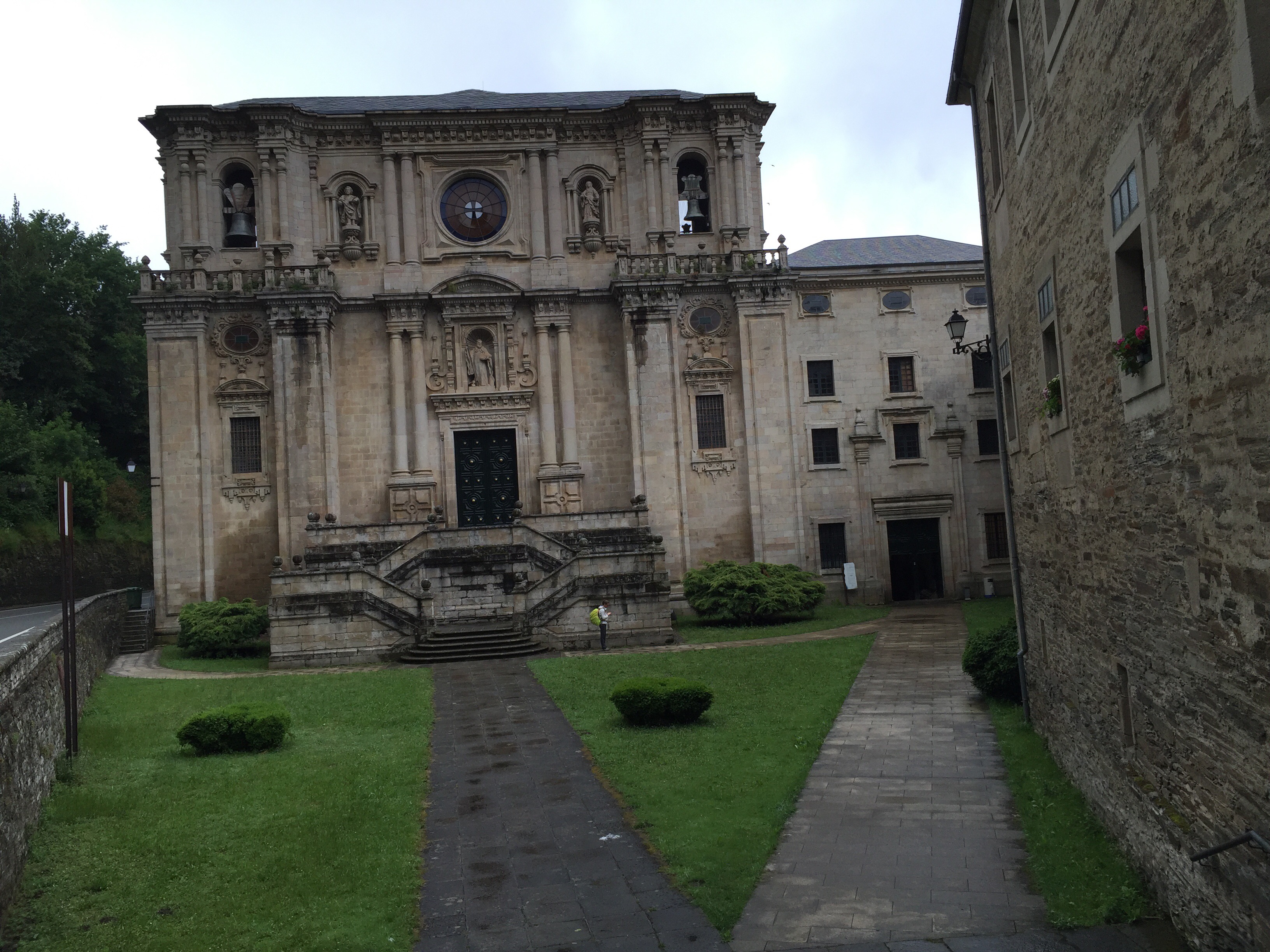 I was waiting in the square when Monica showed up in Sarria. The town is geared for the multitude of pilgrims. Thrre are albergues everywhere, blocks and blocks of them on a long stretch of the Camino going through town. There are also large hotels, stores and restaurants geared towards both the trekking pilgrims and also the car and tour bus pilgrims. Quite a difference in the atmosphere from those wonderful little villages in the middle of nowhere.