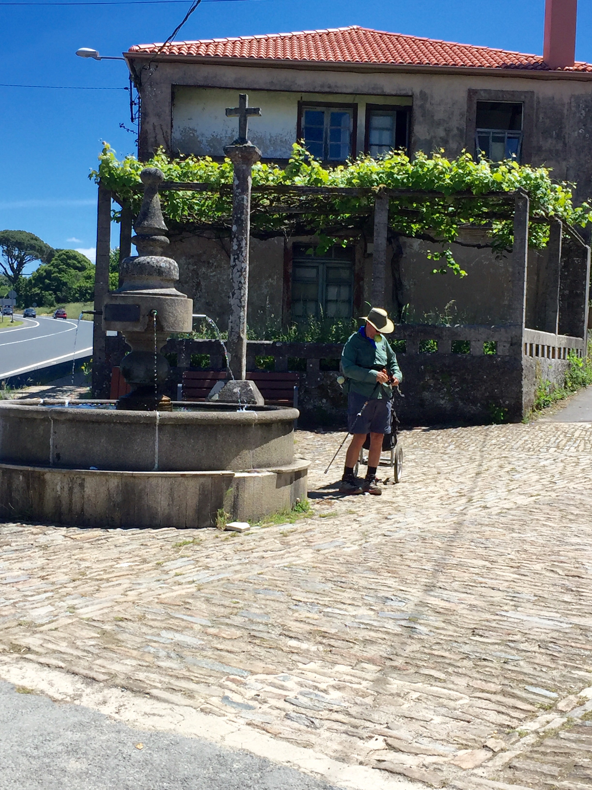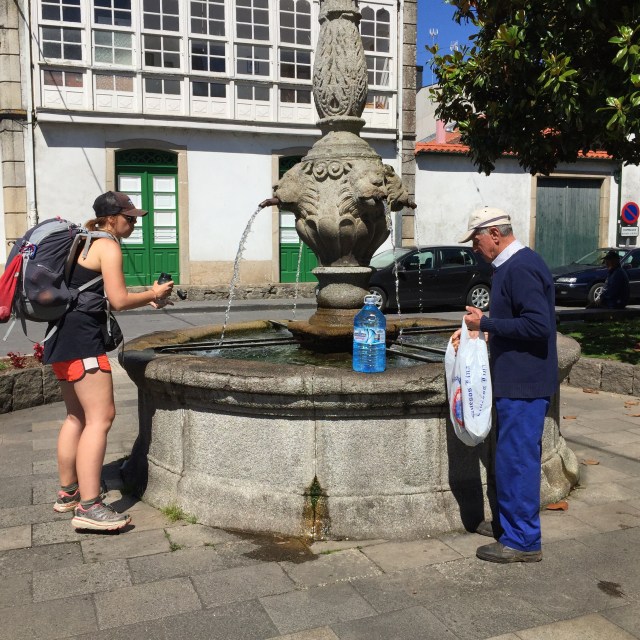 Filling up water from the many water fountains on the Camino for the pilgrims