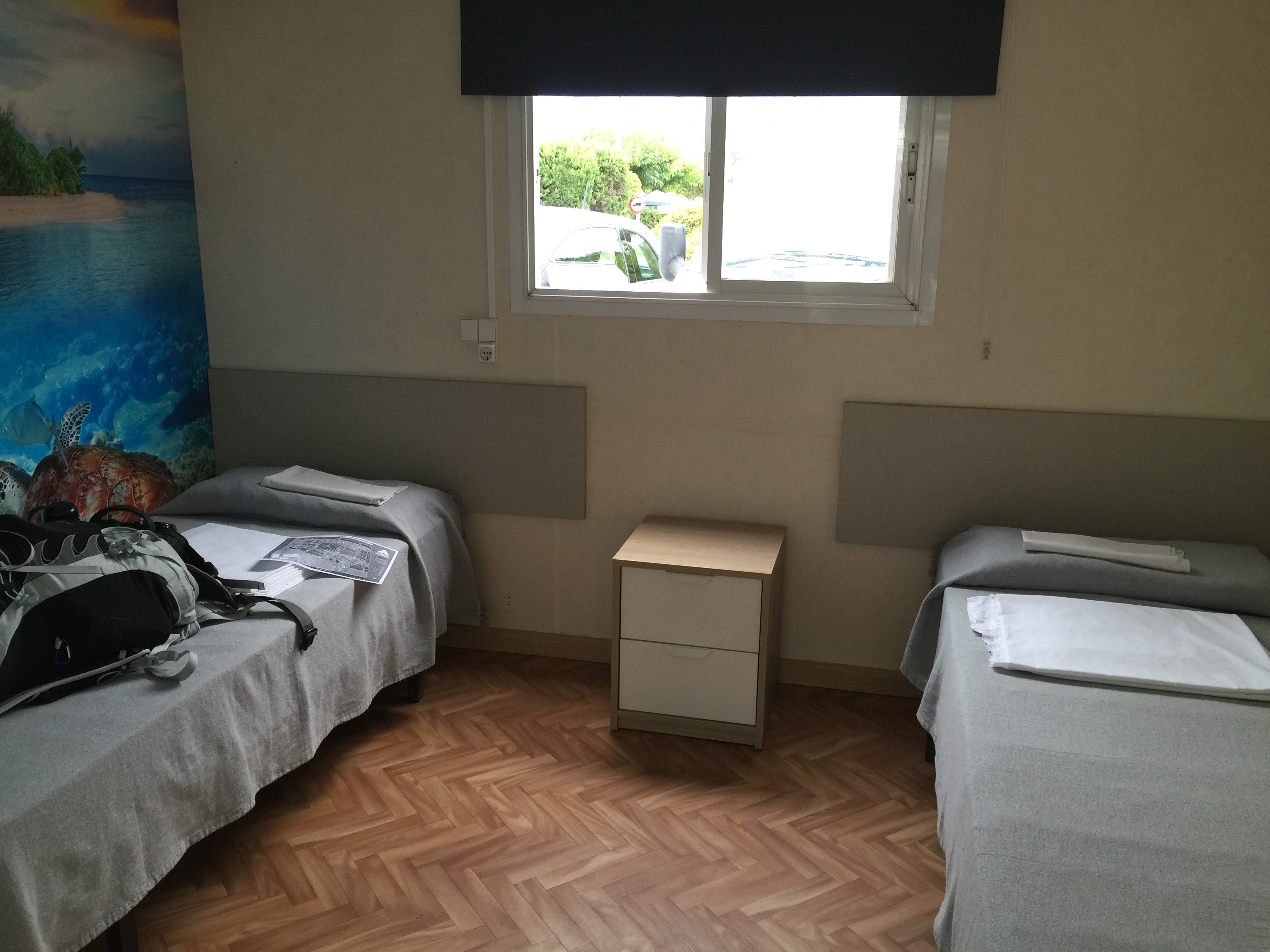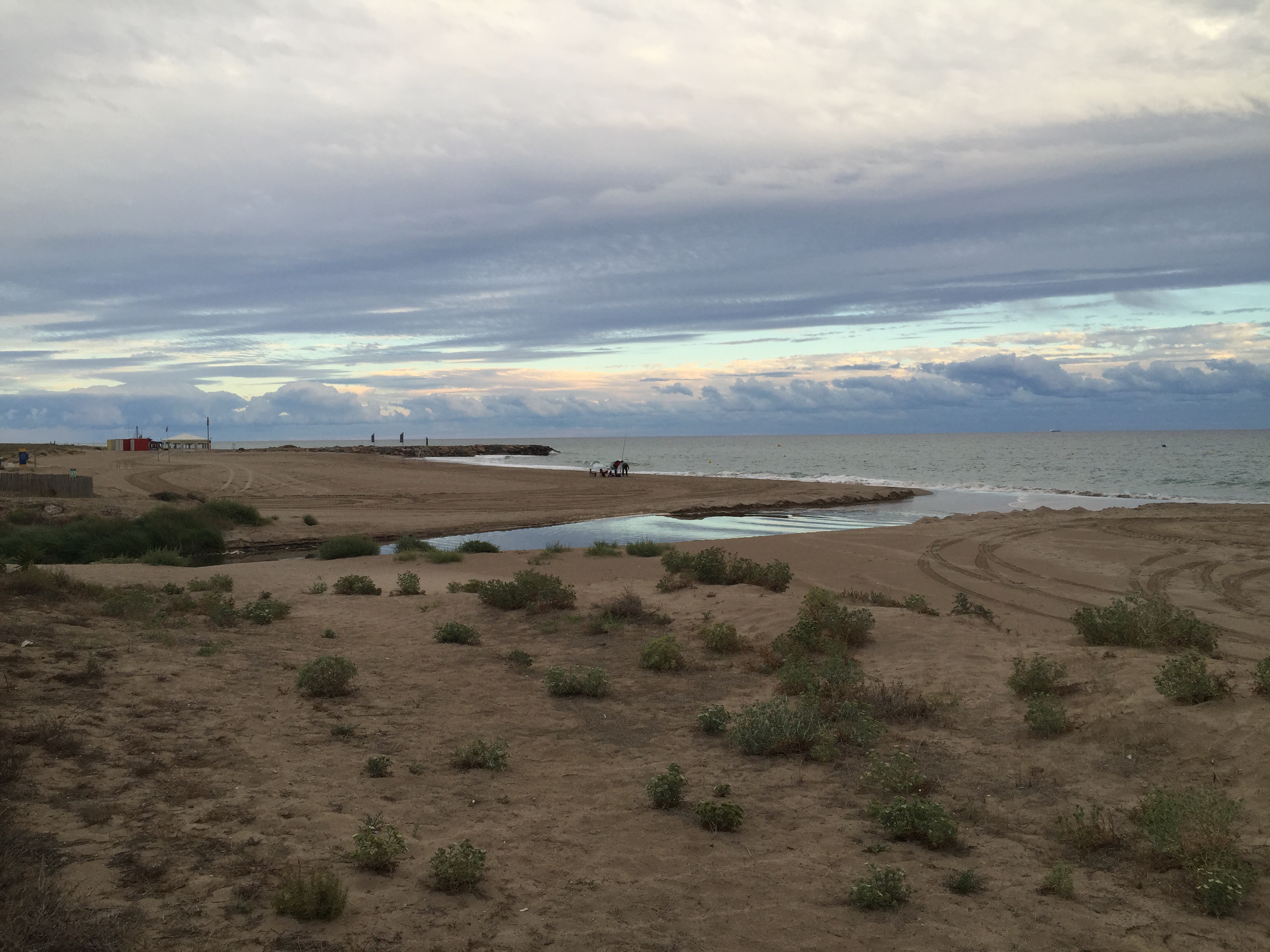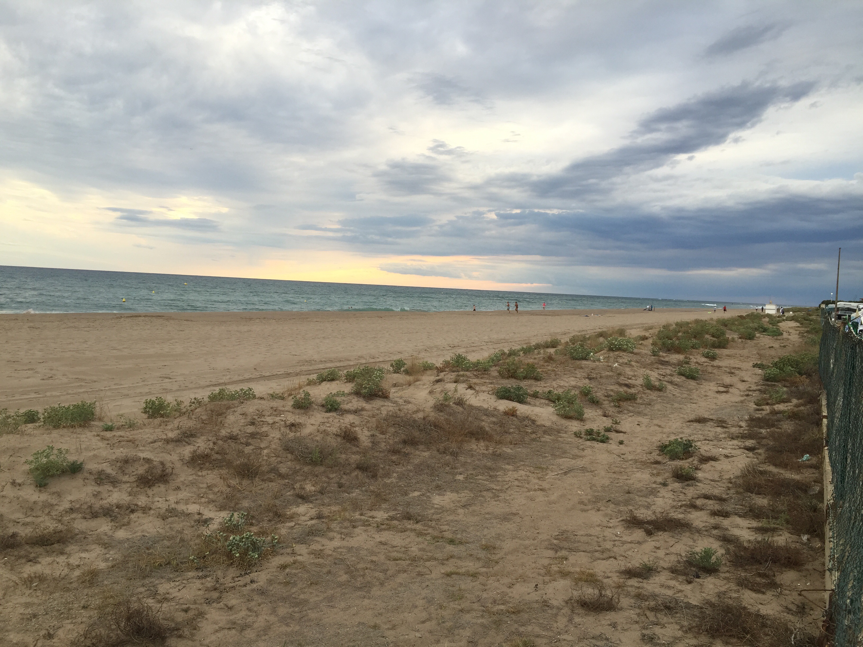 I wasn’t sure if I could arraign transportation to Seville on the same day, so I booked a little one room cabina at the closest location near the airport as I wasn’t sure if I was going to take a train or plane. It was on the beach and looked nice on the Internet and I just booked it at the last minute. As it turns out it is a motorcamp with RVs and tents, and the little cabinas. It’s not bad, and clean, but right under the takeoff flight path of the airport. All part of the adventure!
