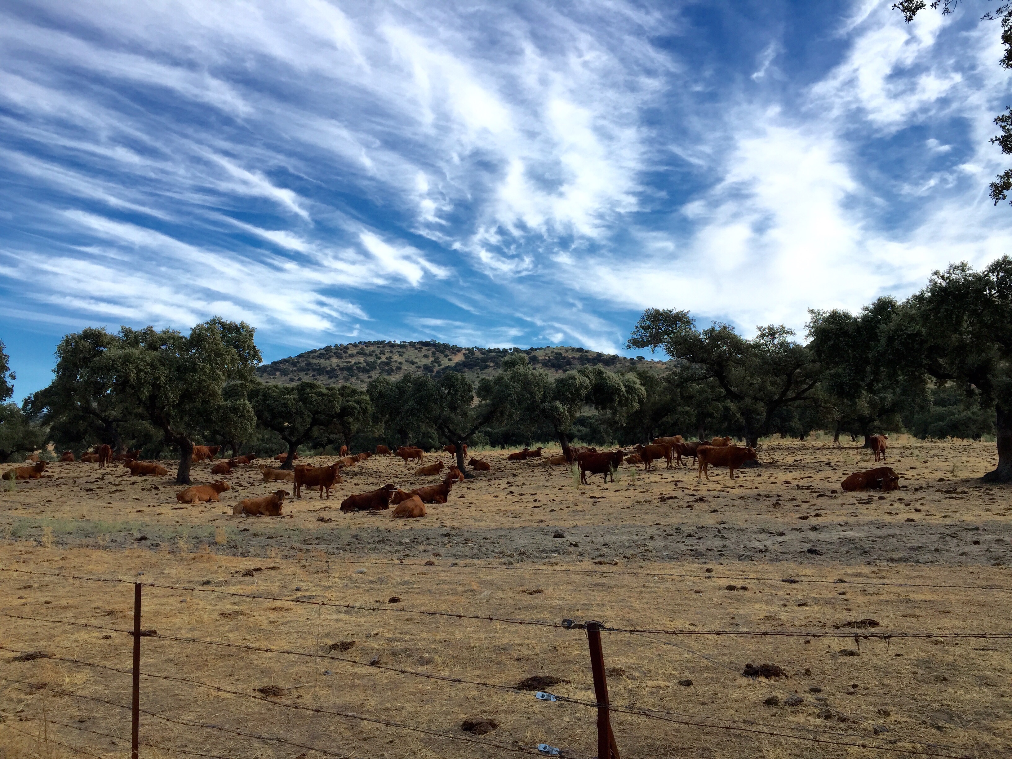 The Camino turned from the street in town to a wide dirt road. Similar landscaping as before with rolling hills. There were several gates that had to be opened and closed to pass through. I saw some pigs, and goats, and even some cattle, which has been a rare sight.