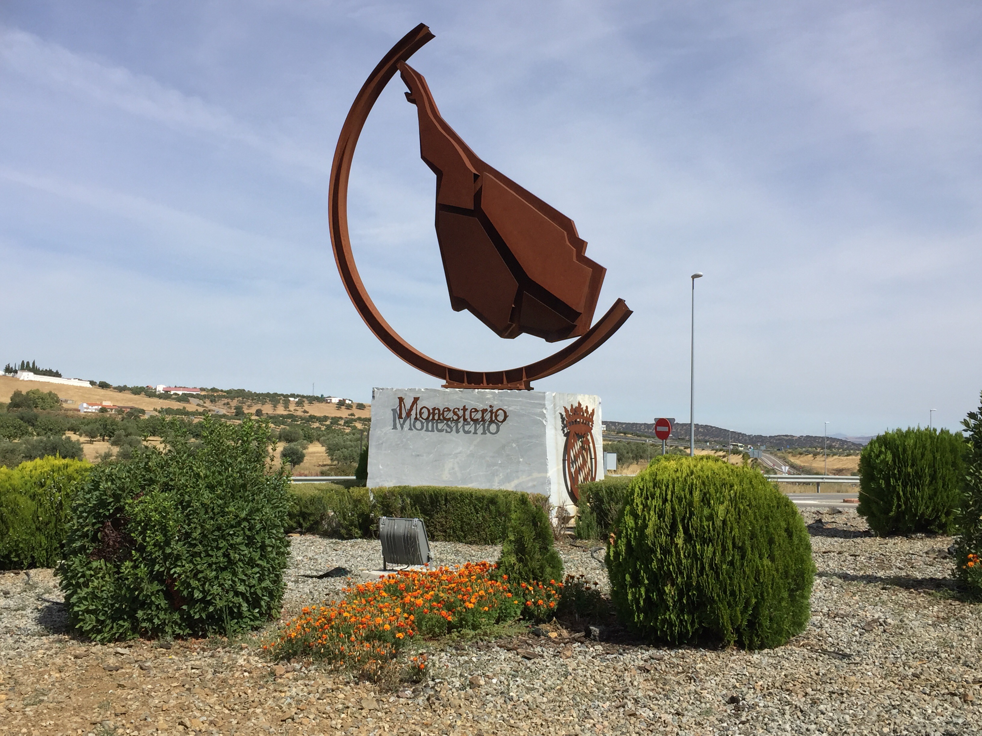 Entrance to Monesterio. Notice the ham sculpture. Can you see that pork is important in this area.