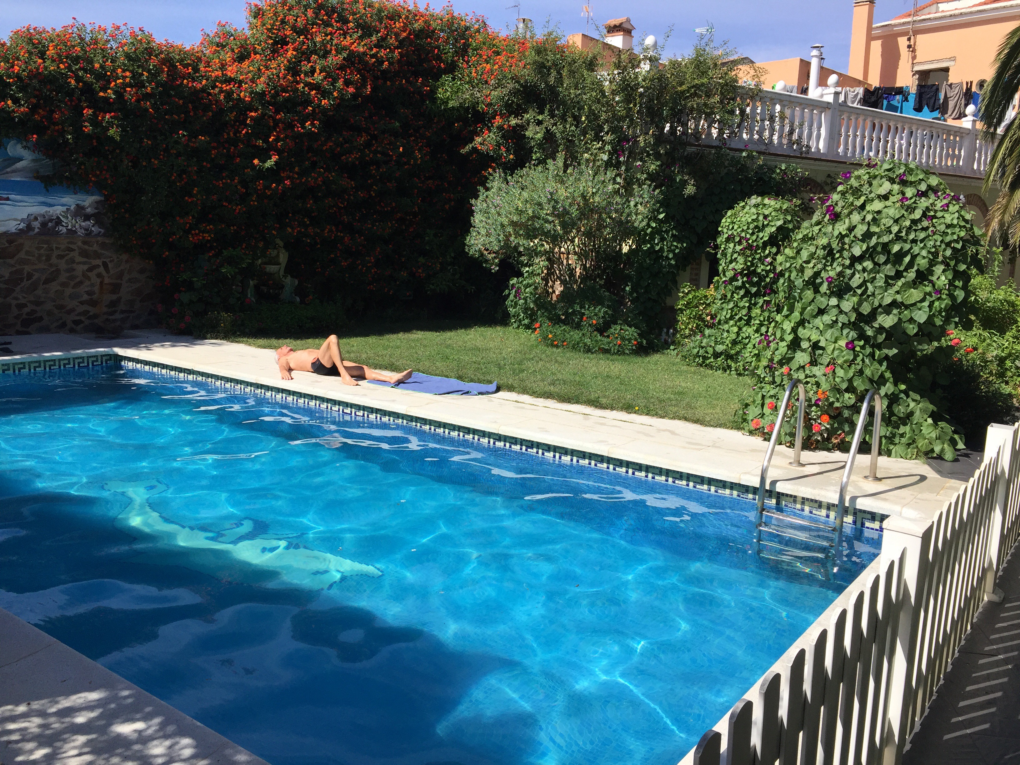 The place had a beautiful patio and upper patio deck. The garden was tropical and lush, with hammocks, and the surprise of all, a pool.