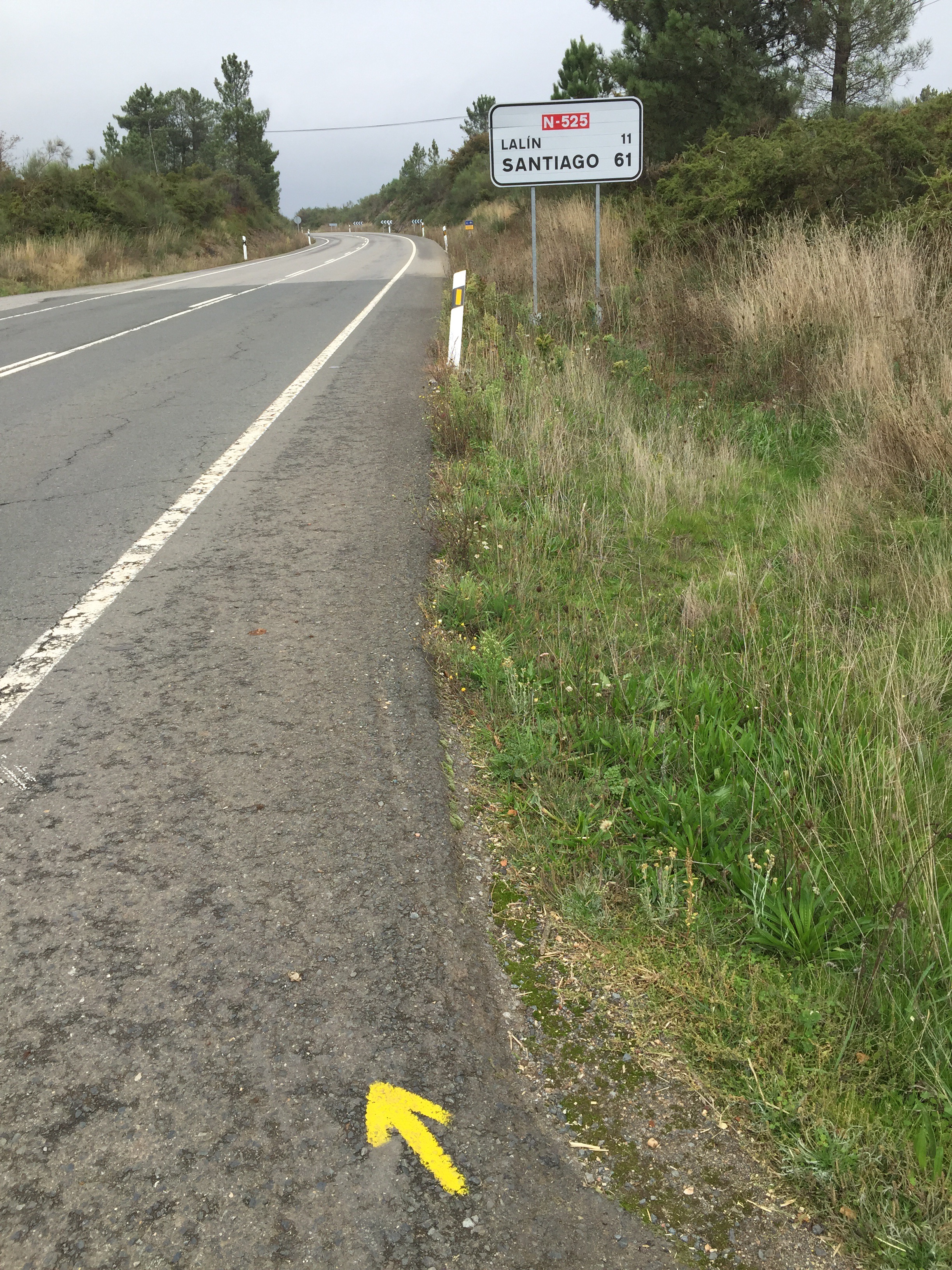 On the Camino. Can’t you tell by the arrow? Santiago 81 kilometers, only 38 miles.