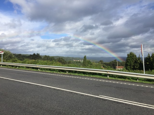 I started out on the Camino but stayed on the highway most of the way as the Camino paralleled the highway, and moved on and off the highway in many places anyway. As troubling as my knee felt this morning the hard asphalt was still better than the tougher and steeper downhills on the Camino.