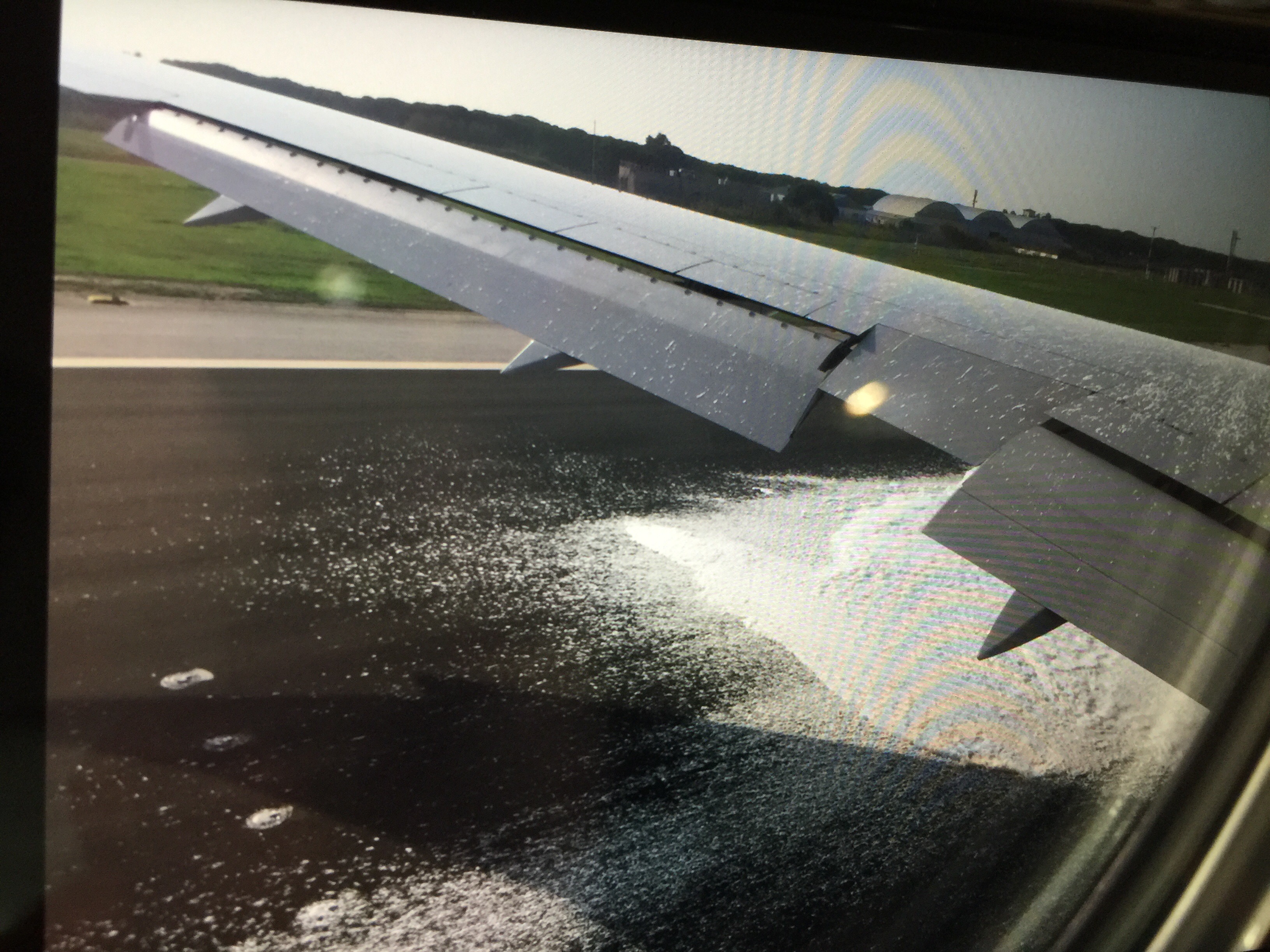 Foam being sprayed on the left engine. (Have video of fire trucks and water being sprayed on right side)