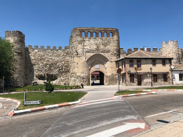 I moved onto the bike trail and happily trekked on it to the next town, Nava de la Asuncion, where it ended. I went back onto the Camino and just out of town it looked like it was going back into the forest and the sandy soil. It was another seven miles to Coca and I did not want to chance going on the sandy surface and decided to stay on the highway. There was not much of a shoulder and fortunately there was little traffic. After about two miles there was a frontage road directly next to the highway and it had a hard pack surface and I moved onto it the rest of the way into Coca.