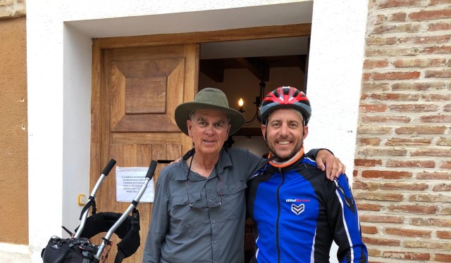 Joaquin, 70, and riding to Santiago on a mountain bike. Not easy! His Facebook post says, “Seventy, and more I can!”