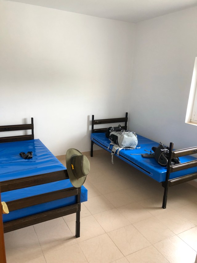 My room and bed. All to myself. Notice the nice mattresses with thick plastic covers. Keeps them clean but I hope you have a sheet or sleeping bag liner.