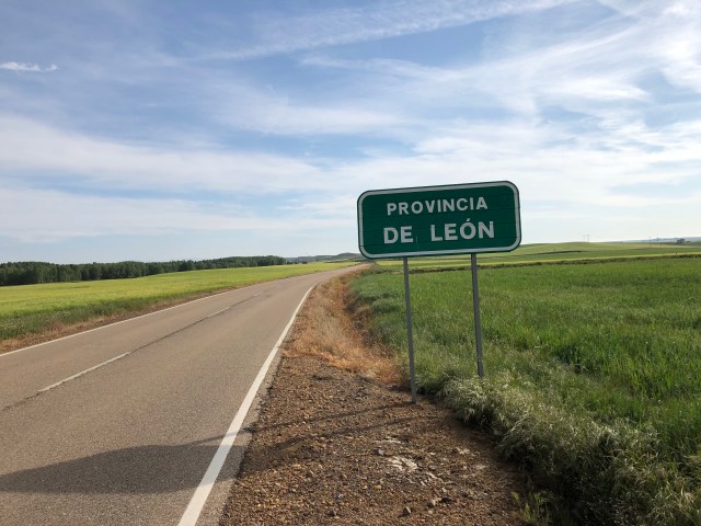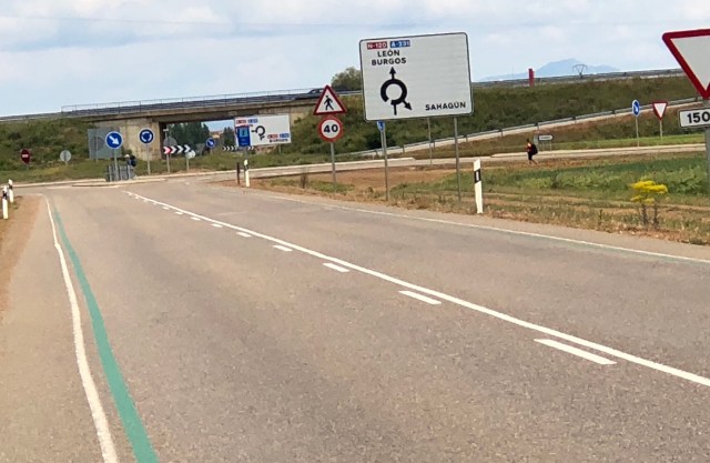 Just south, and outside Sahagún, the Camino Madrid crossed an intersection leading into town, and it then turns east into the middle of Sahagún. The Camino Francis runs to the west and this would add more distance on the Camino Francis just to get back to a point directly north of here. The other option was to follow another road that was posted as an alternate way to the Camino, bypassing Sahagún and going west to connect with the Camino Francis. That’s the route I decided to take.
