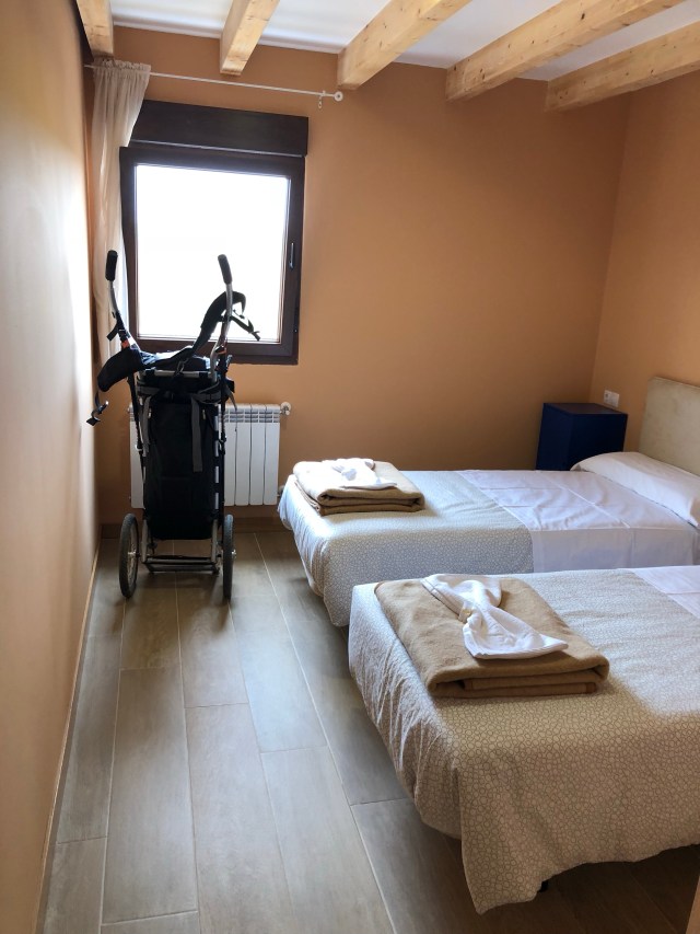 It was about 1:30 when I stopped and by the time I had my drinks and chatted with a woman pilgrim from Germany and hour had passed. I looked at the rooms, either four beds to a room with a shared bath, or a private room with a bath. Realizing I wasn’t motivated enough to go back and start walking, and hoping to find a place as nice as this, I got a private room for €28. It was fairly typical price for the Camino and a private room is what I wanted tonight.