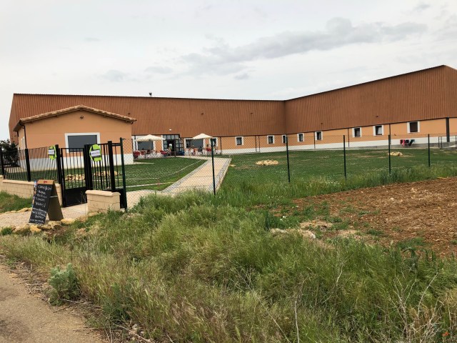 The Camino for the next five to six miles was on a well maintained and defined dirt path which was directly next to a frontage road. I walked on both, back and forth, for most of the way. Just outside of Bercianos del Real Camino I saw a large nice looking new building that turned out to be a bar and albergue. I was thirsty and stopped hoping to get my fresh squeezed orange juice and found it was an alberque with private rooms. I was told it was so new that it wasn’t in any of the guide books.