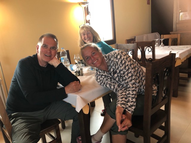 I had a very nice pilgrim dinner for €10, which as always on the Camino, came with a bottled water or a large bottle of wine. I had dinner with two women, Andrea from Hungry, a personal trainer, and Francesca from Germany, a government worker. Later another American woman, Brandy, from Texas joined us. She was forty-two and just retired from the Air Force as a major. Francesca told me since she started the Camino in Saint Jean Pied de Port that she had met people from 35 countries. Not surprising because that’s the Camino.