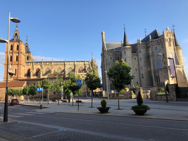 Leaving Astorga in the morning through a quiet plaza
