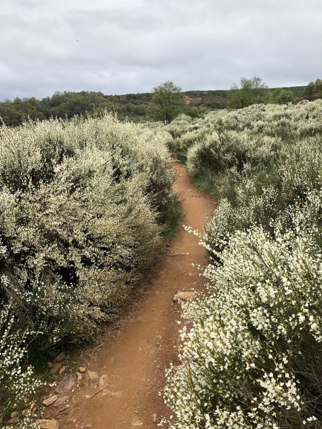 The Camino actually started uphill right out of Astorga, but at a gradual incline most of the way. It ran next to the road most of the way and went from a wide trail to very narrow in sections. The vegetation started to change as the elevation got higher and you could still see some patches of snow on the surrounding mountains.