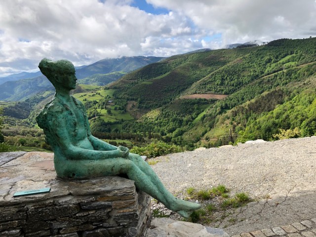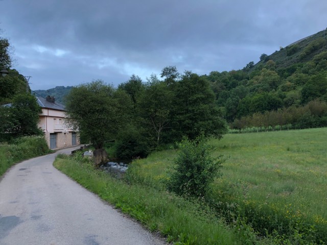 There were a few other pilgrims starting up the Camino on the asphalt road out of Las Herrerias. It starts out steep right away and stays that way for the next four and a half miles, and never levels out during that distance.