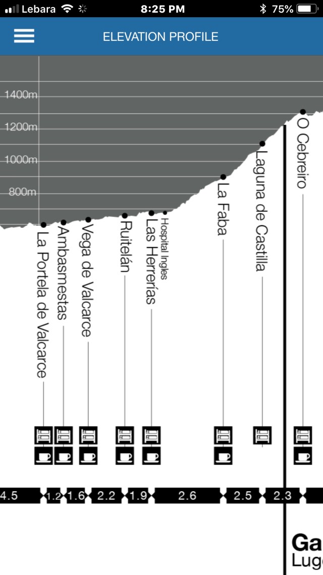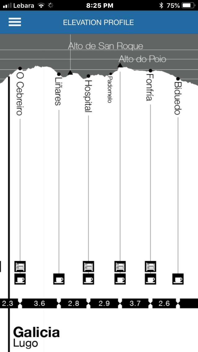 Tomorrow the weather forecast is for heavy rain all day long. The rain I won’t mind too much if it’s not cold. The elevation chart for tomorrow’s Camino looks like mostly a gradual downhill, a plus after today. I was hoping to make it past Sarria, which is where eighty percent of pilgrims start their Camino, but it might be a little too far from here. I might stop short of Sarria and then go through the next day and stay just outside the town. I am not in a rush and I’ll just play it by ear.