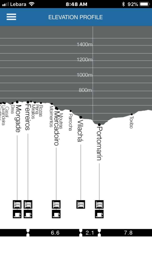 In Sarria the Camino starts off uphill immediately and continues uphill for the next few miles. After that it was pretty much like a roller coaster with many ups and downs, and with very few long level stretches.