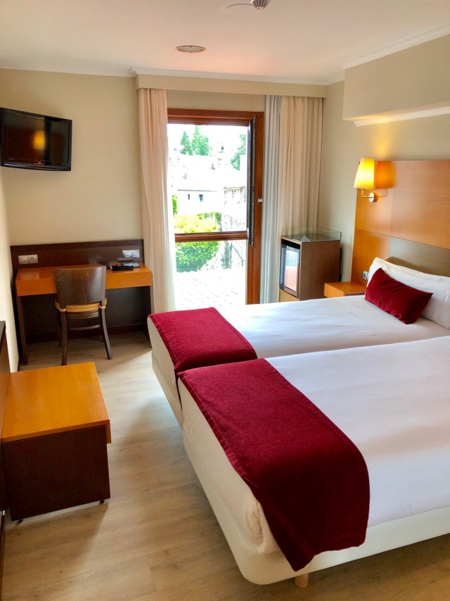 I checked into the Bonaval Hotel, where I had stayed before, and got a great room overlooking the roof tops and the Santiago Cathedral. Making that reservation, and being a past guest, always helps.