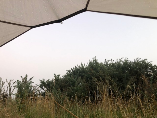 When I first woke this morning I thought it was still night because it was so dark. The inside of the tent and everything inside seemed damp. I poked my head out the tent and everything looked wet from the rain and it was also very foggy. Wow, what a swing in the climate.