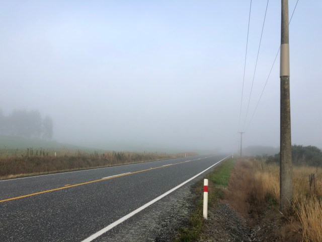 I actually enjoyed the cool weather and fog, and shortly I was able to see far enough ahead that the fog didn’t bother me. Traffic was fairly light and I could usually hear the traffic before I could see it.