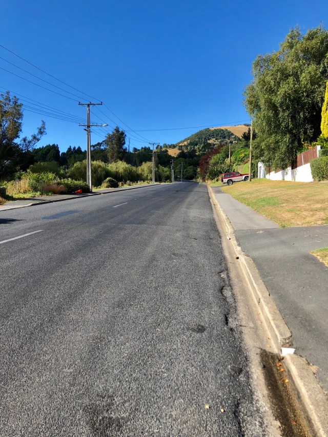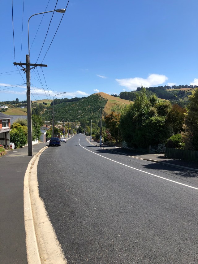 I have to be honest that I was a little unsure about the way to Dunedin, and the road through and beyond once I got there. I spoke to four different people at the caravan park about the best route there because Highway 1, the road I had been following, turned into an expressway at Mosgiel with no pedestrians allowed. Google gave me two options, one by what’s called the Three Mile Hill Road, which everyone at the said was very steep. The other route ran parallel to it and was similar in terrain and not recommended. The four were actually arguing which way was the best. They all agreed that by way of the old main highway was the best, but my head was spinning when they all gave me their directions!