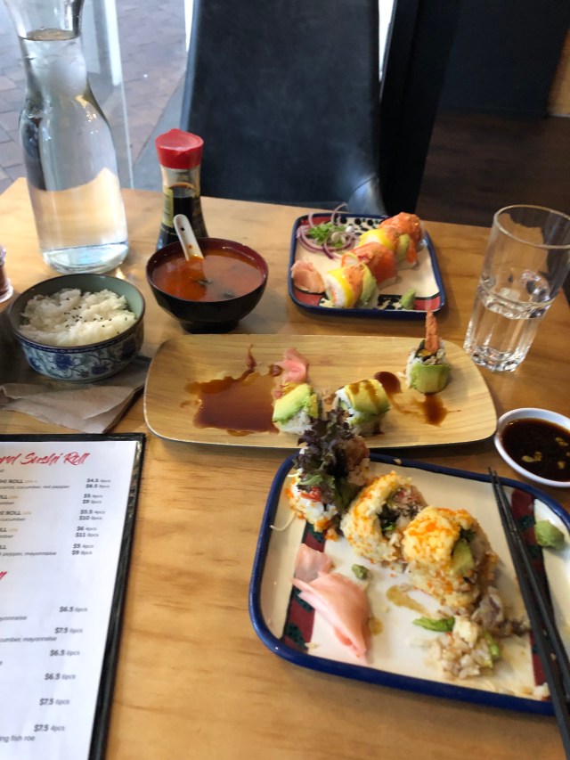I ended up going to Jizo, a Japanese sushi restaurant. I had heard that sushi here was very reasonable, opposite of how expensive it is in the States. It was a very nice big restaurant and it was packed. I had a huge meal, to the point of being stuffed, and my meal was only $17 US. That is one of the cheapest meals I’ve had here. That same meal at home would be $40 or $50. I thought that was a steal because (sorry Kiwis) food here is very expensive compared to back home.