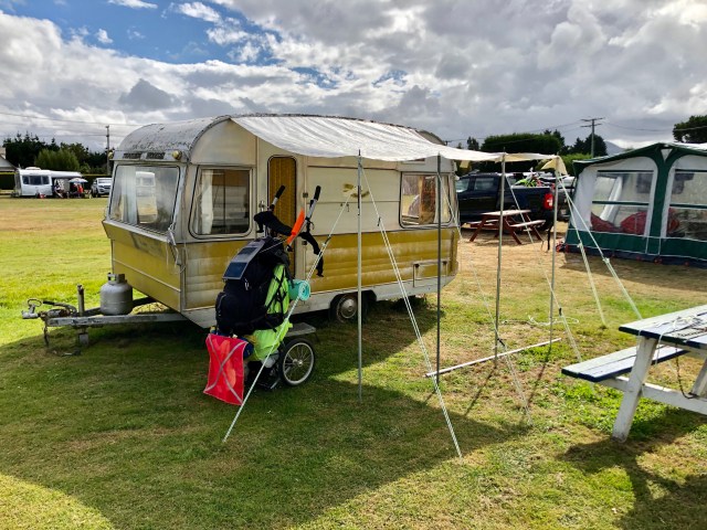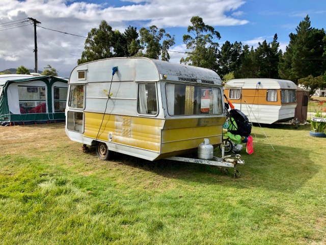 I went a little further to the Waikouaiti Beach Motorcamp and they had one cabin available, but it was only for two days minimum. The owner pointed towards some nice looking travel trailers and said that if it was available I could have it. Turns out it was vacant, so he gave me a choice of the trailer or a tent spot. I choose the nice comfy looking trailer for $30 US without hesitation.