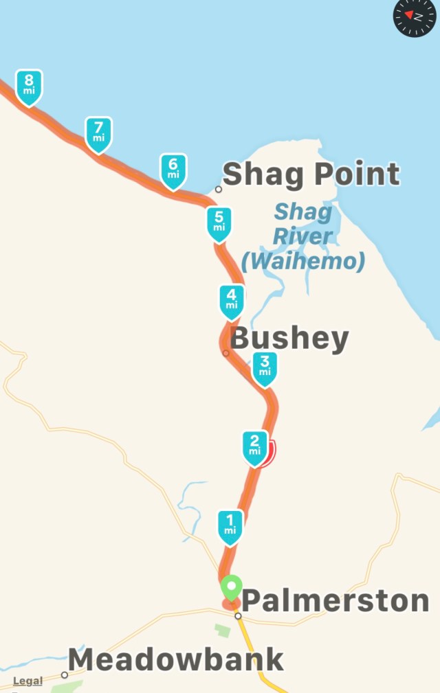 Palmerston to Moeraki (16.20 miles/26.08 kms)