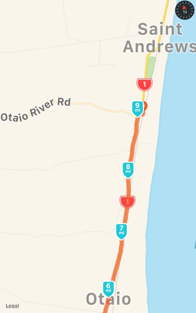 This confirms my consideration of bypassing Christchurch by taking the alternate route after Timaru. It is much less traveled, and will added an extra day or two, but it will get me off the main highway.