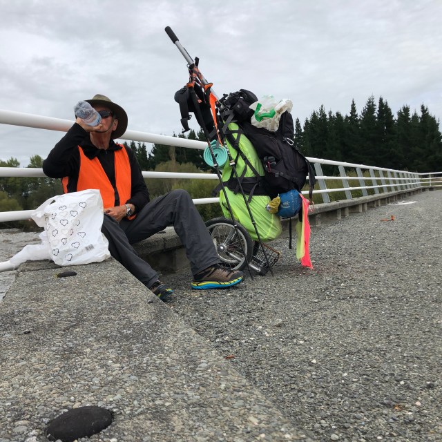I had planned to find a place today that had showers, and I was hoping to make it to the Rakaia Gorge and the camp ground there. I was making good time and might have been there by 3:00, but I ran into two woman bicyclists (age 30) from Switzerland and stopped to talk with them. They just started two days ago and did not seem experienced. One had a rented bike. They were not sure where to stay or which way to go. I gave them some directions and a few motor camps to stay, especially the one at Moeraki, which is owned by a nice Swiss couple. They were very thankful. Even though they seemed a little nervous about their adventure, I have to take my hat off to anyone that goes after something that challenges them.