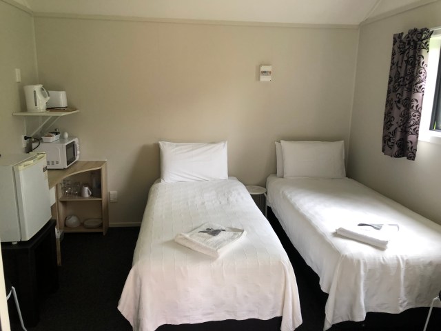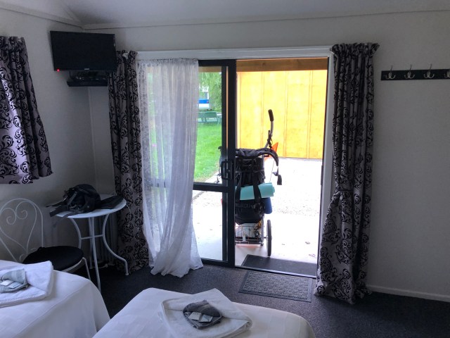 I checked in to the Chevoit Motel and Holiday Park and got a nice cabin. It was fairly reasonable for $70 NZ ($48 US) since it was a nice quality cabin with nice linen, fridge, microwave, and tv. It is an attached cabin and I met my neighbor next door, Susan Macks, from Wellington.