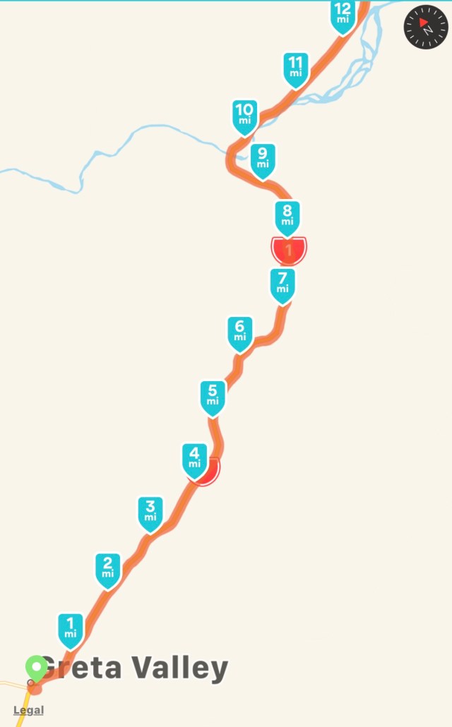 The cold was perfect trekking weather because it was not an easy day. After leaving Greta Valley the road was a roller coaster as it ran through mountainous terrain all day. There were very few level areas and the road was fairly windy.