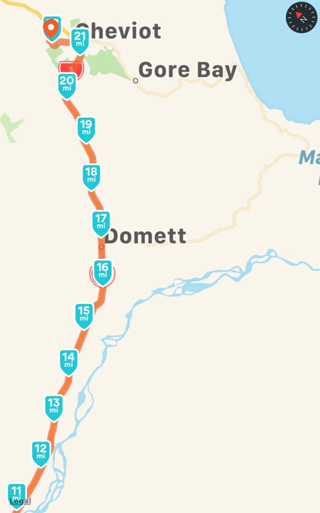 It was almost eerie this morning because there were no cars coming in my direction, and I only counted about ten in the first hour. Traffic was minimal until after 11:00 and then it was still not as bad. I found out that the road work and closure starts just north of Cheviot and doesn’t open until 7:00 am, so that is one of the reasons it was so quiet.