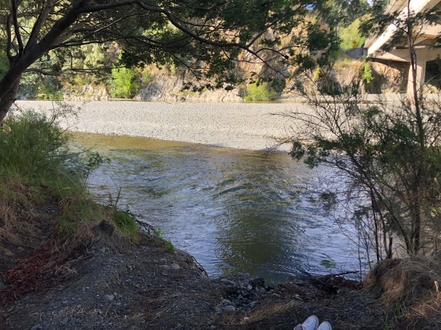 It was 4:30 by then and I was anxious to set up my tent when a nice young German man and woman said hello to me from up on the bridge. Apparently they have been hitch hiking all over the country for months. The had passed by me on the road earlier, and were just dropped off by another car when they saw me coming down here. They just came down to say hello and ask about my trek. They were so nice, but I was so tired I could barely talk with them. I don’t think they noticed, and thankfully they went down to the river to swim while I quickly set up my tent. Later they came back to say good bye and they also yelled good bye to me from up on the bridge. Nice young people.