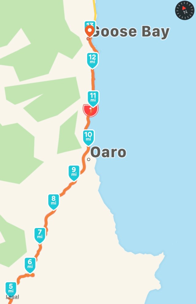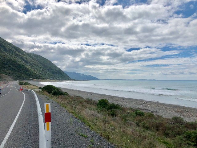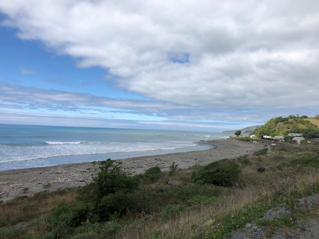 I only have one of my fortified oatmeal meals left and I am tired of them, so I just had cheese and peanut butter on some multi grain crackers for breakfast. I am out of food other than two freeze dried meals and that was why I thought I’d have to push to get to Kaikoura, but it was 22 miles away.