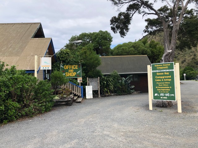I crossed the street and went to the office of the Kaikoura Coastal Campground and met the 3 month new 3 manager, Ann. She had a sign out front stating it was a store with a list of items, but there were only a few drinks and ice cream bars, and no other food. I told her I’d love to stay but I had to trek until I got to a store or restaurant. To that she said she could grill me a sandwich. Really? Yes, cheese and onions, or whatever you’d like on it? By then I’d grabbed the only chocolate milk out of the fridge and drank it. I was hungry and thirsty.