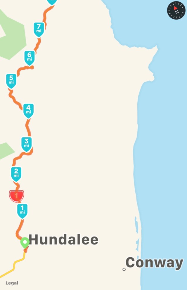 Traffic was fairly light but I am very, very, cautious no matter how much traffic there is, but today was a hair raiser. I wasn’t going to post this in my blog as I’ve kindly heard from several well meaning people tell me how dangerous trekking on the road is, and I am always aware of it, and as mentioned, always use extreme caution. Not to use an analogy that is way beyond a comparison to what I do, but someone that is climbing a mountain peak like Everest, knows there is danger and uses caution and probably every safety item available to him, and they are aware of the risks, but are still going to climb it because that’s there passion and goal.