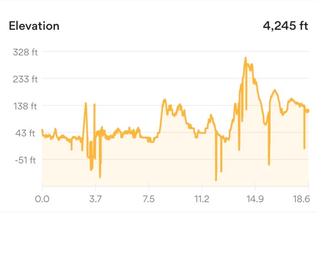 When it finally turned inland it started with a long steep uphill climb that was a few miles long. After that there were another series of steep hill, but not as long. Even going up the long steep hill I surprisingly maintained my rhythm. When I finally reached Ward I felt tired, but it was probably psychological knowing it was the end.