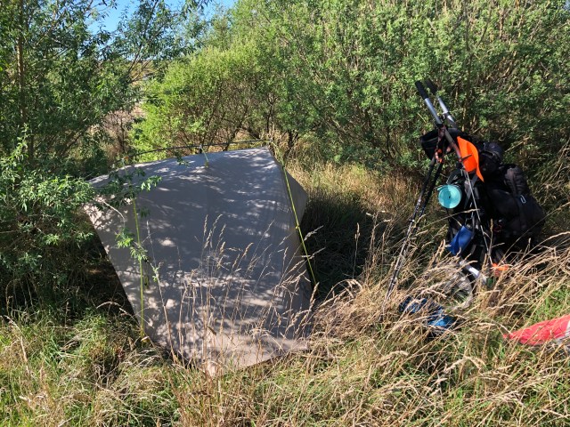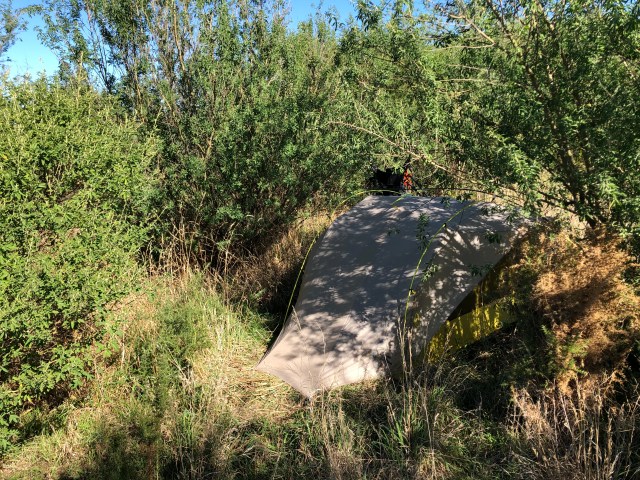 My camp spot well protected from the high winds of the day