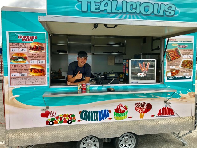 On the way into town I found a nice little Indonesian food trailer with some great dishes. I was born in Indonesia, before living in the Netherlands, and then moving to the States, and I grew up eating Indonesian food. I have to say it wasn’t like my Mom’s, but it was pretty good! Who would say someone else’s cooking is better than their mom’s anyway?!