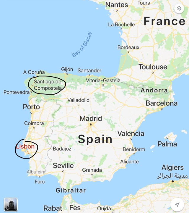The Camino Portugues or Portugues Way that I will be trekking starts in Lisbon, Portugal, and will finish in Santiago, Spain.