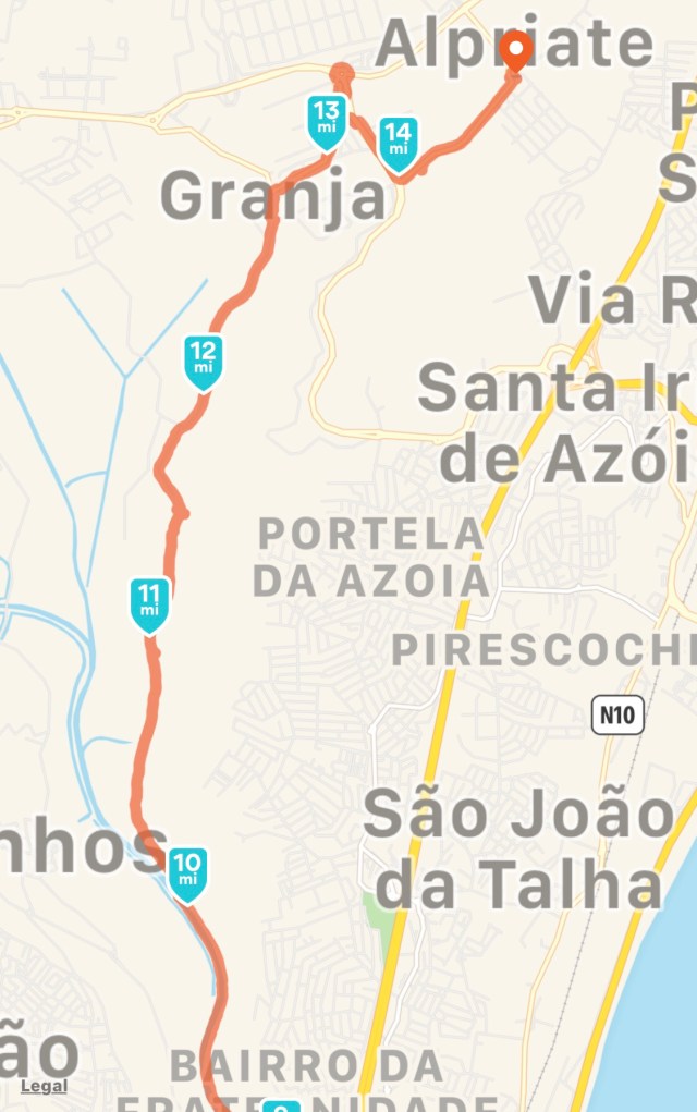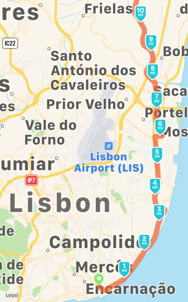 Lisbon to Alpriate (14.70 miles/23.67 km)