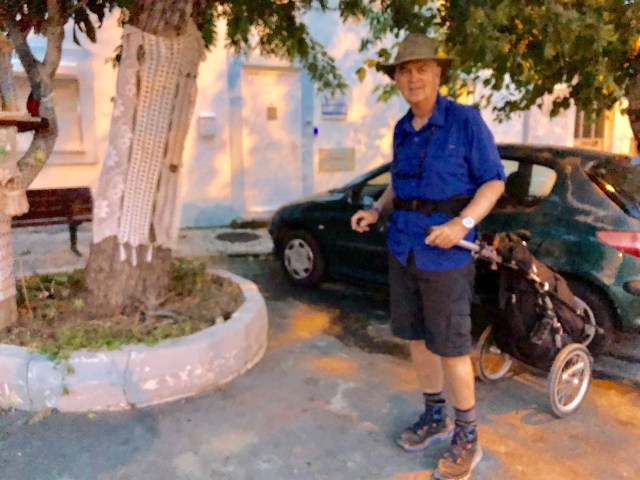 I walked with Doc most of the day until I had to stop and on the Wheelie. Stepping off a high curb one of the straps connecting the waist belt to the Wheelie handles broke. Fortunately, I was able to tie off the strap and use it.